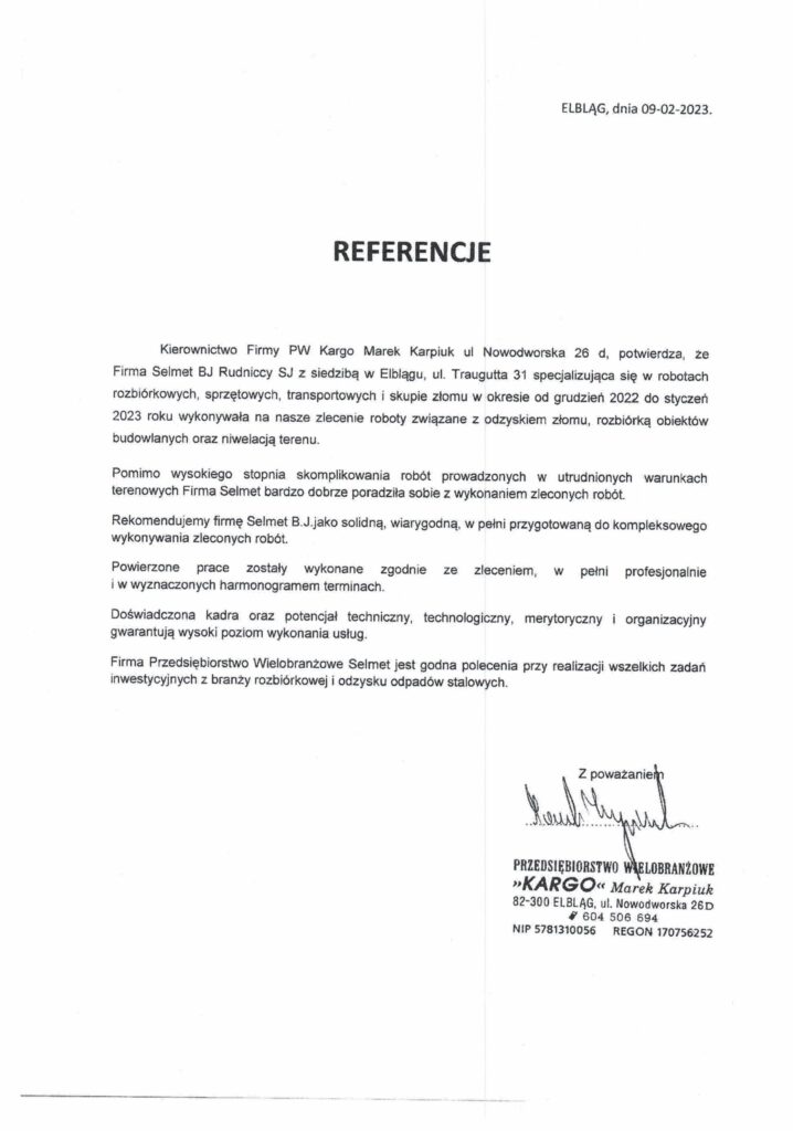 Referencje Dowody rzetelności i profesjonalizmu potwierdzone przez naszych największych partnerów biznesowych. Dołącz do grona zadowolonych partnerów Stawiamy na transparentność i rzetelność w każdym kontakcie biznesowym. Poznaj nas bliżej